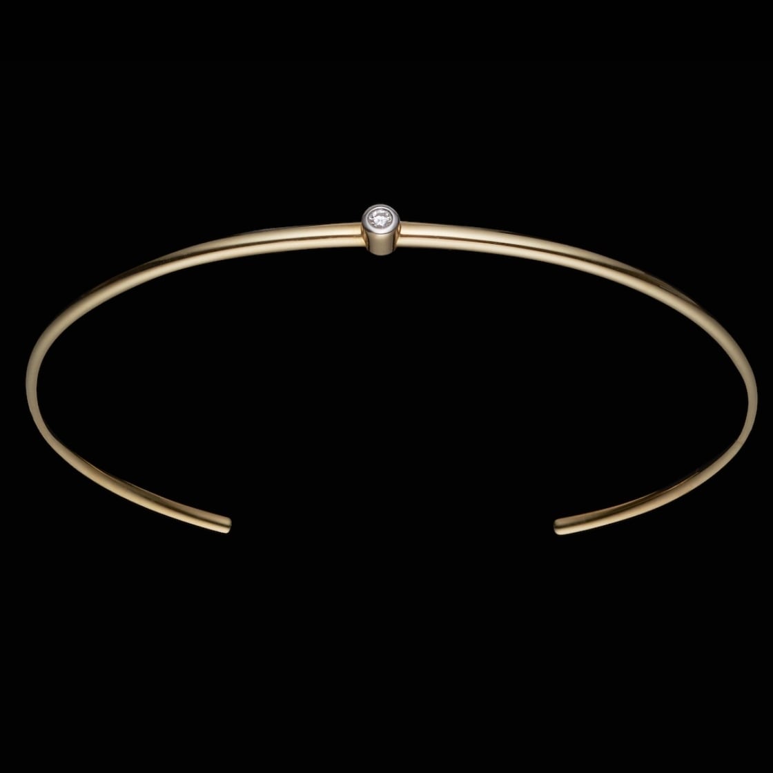 シンプルなバングルタイプで装着もスムーズです。他のブレスレットとレイヤードして個性を出す重ね付けもおすすめです。