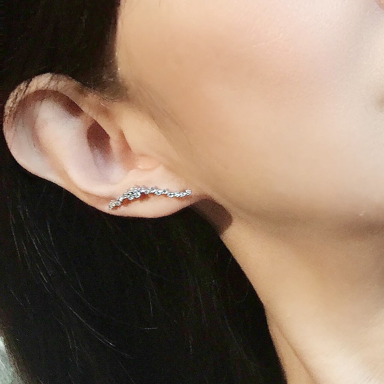 優美なウエイブが翼を広げたように広がり、美しく華やかに耳元を彩ります。アシメトリなデザインのため左右逆にお着け頂くと又違った表情をお楽しみいただけます。